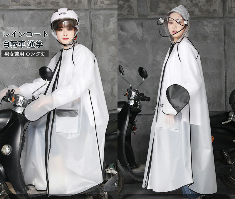 【全身をすっぽり包むロング丈レインコート】 Point1.男女兼用の大型ロングサイズ Point2.袖付きだから、自転車の運転がしやすい Point3.リュックを背負ったまま着れる 【バック背負う用/乗る用/歩き用の3way利用可能】 通学、通勤、自転車やバイク・原付、雪かき、犬のお散歩保育園の送迎などの日常使用はもちろん、キャンプ、釣り登山、ハイキング、ウォーターレジ雨の日のイベント、野外フェススポーツ観戦などのアウトドアでも使用可能。