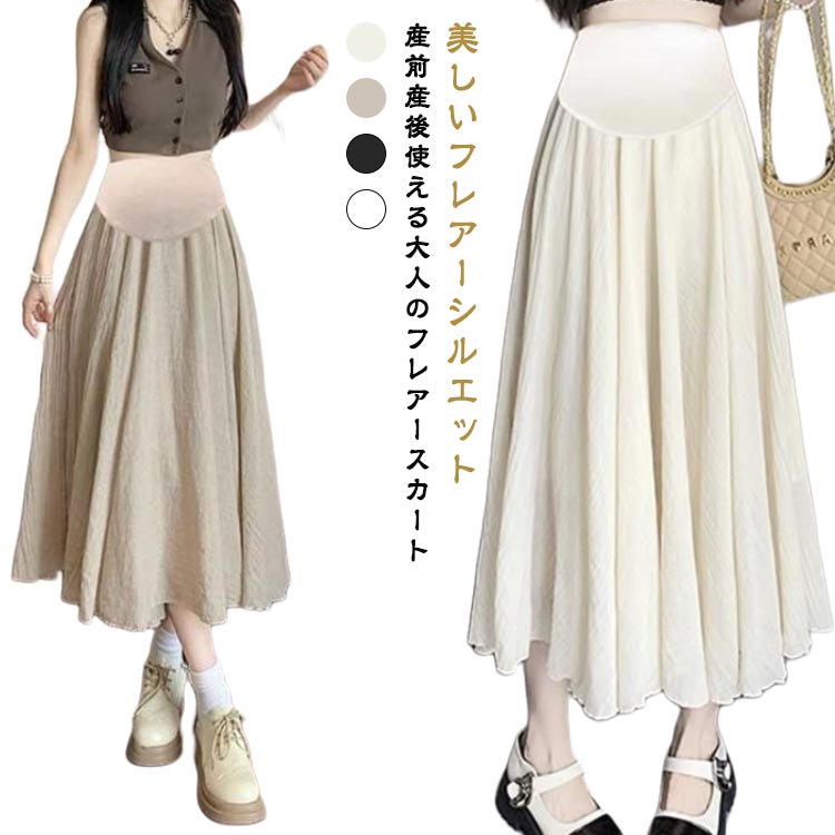 美しいフレアーシルエット 産前産後使える大人のフレアースカートサラッとした生地だから、暑い日でも快適に着用していただけます。