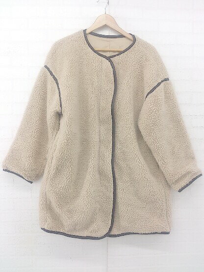 ■ ノーブランド ボア パイピング もこもこ 長袖 ノーカラー コート サイズL ベージュ レディース E 【中古】管理番号130624000487720230920ベースW782/菅EX付属品無ブランド記載なし。