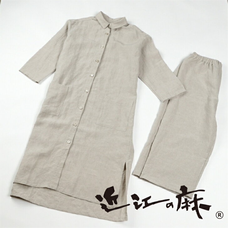 ホームウエア パンツ付き セット 日本製 麻100% リネン 清涼感 レディース 女性用 ワンピースタイプ ポケット付き ナチュラル 生成 ファッション ギフト「近江の麻」レディースホームウェア おうち時間も麻に包まれてみませんか。