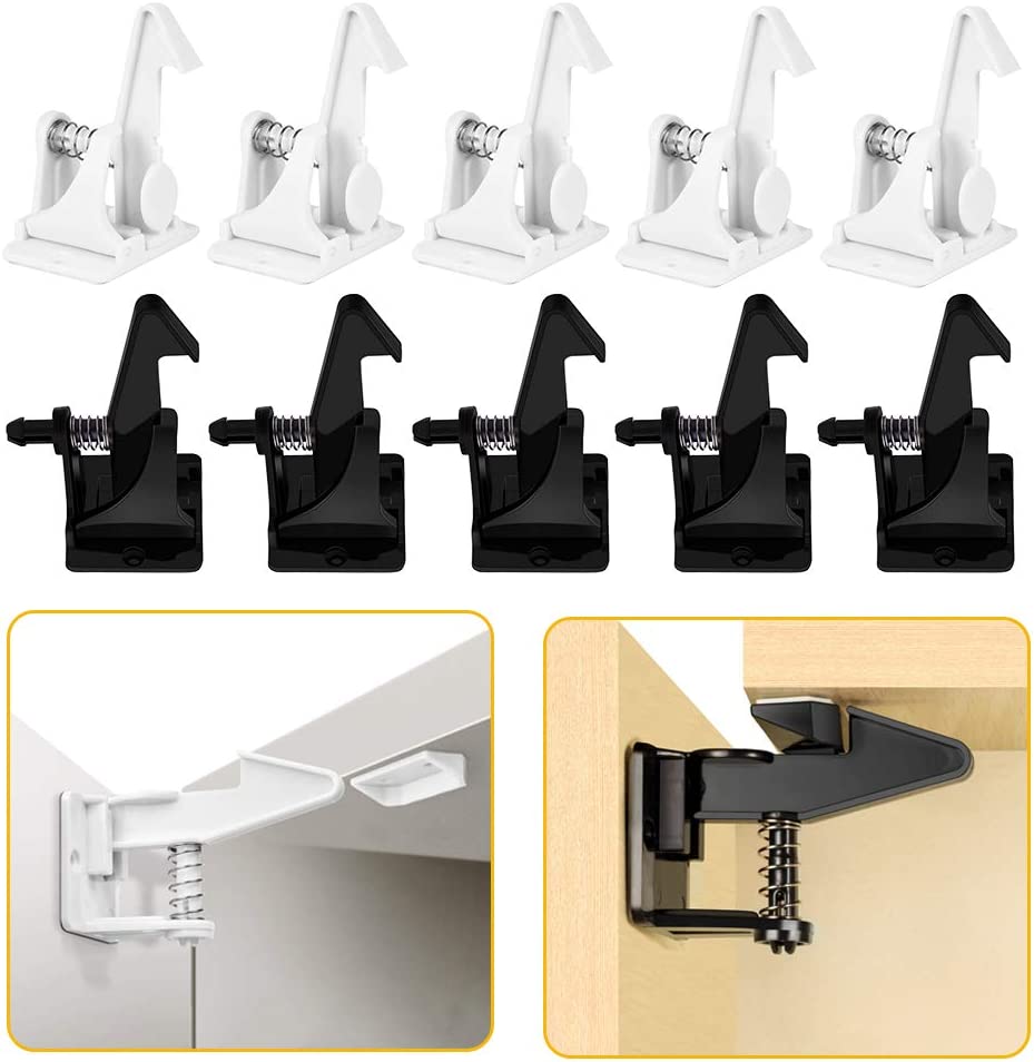 10個セット ベビーガード キャビネットロック チャイルドロック 引き出しロック ストッパー 子供 いたずら防止 地震対策 赤ちゃん 指はさみ防止 強力テープ 工具不要 取り付け簡単 ブラック ホワイト