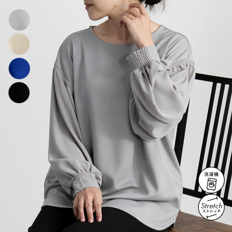 袖シャーリングデザインが特徴のチュニックブラウスです。