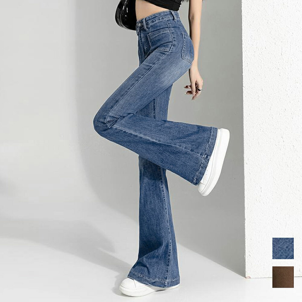 フレアデニムパンツ ハイウエスト 韓国ファッション(T)