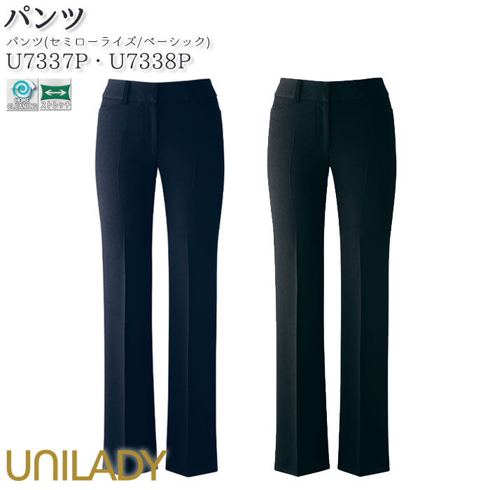 事務服 パンツ U7337P U7338P セミローライズ オールシーズン ネイビー ブラック UNILADY 5-19号