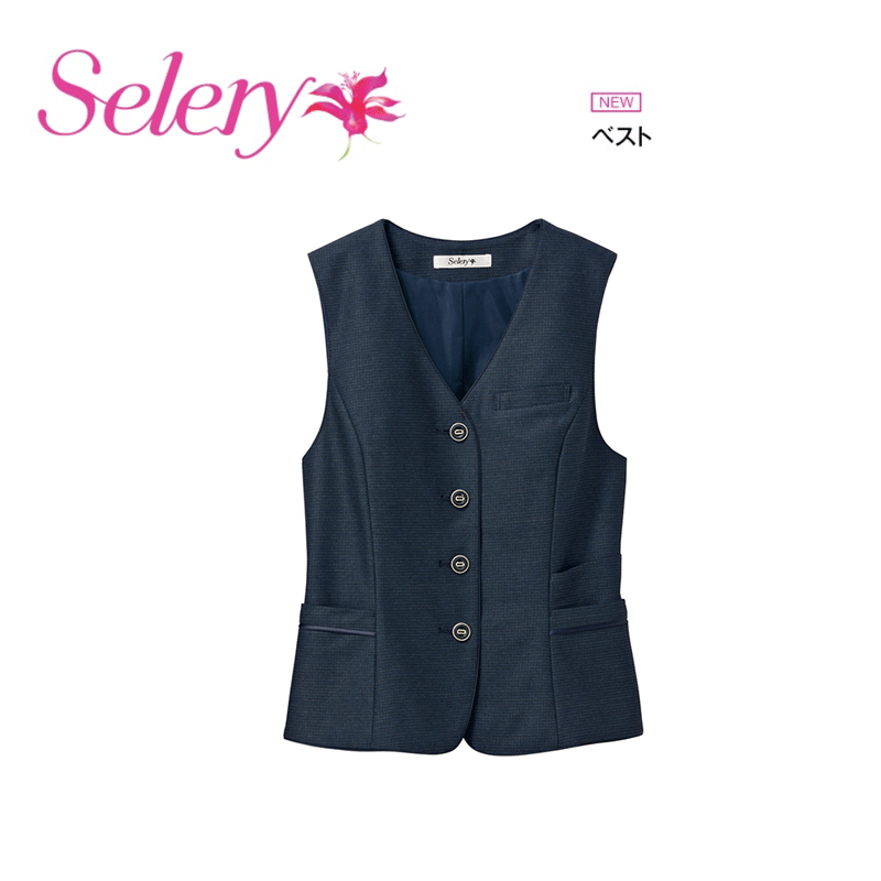 事務服 制服 ベスト レディース ホームクリーニング セロリー Selery ネイビー S04571 二重ポケット ニット