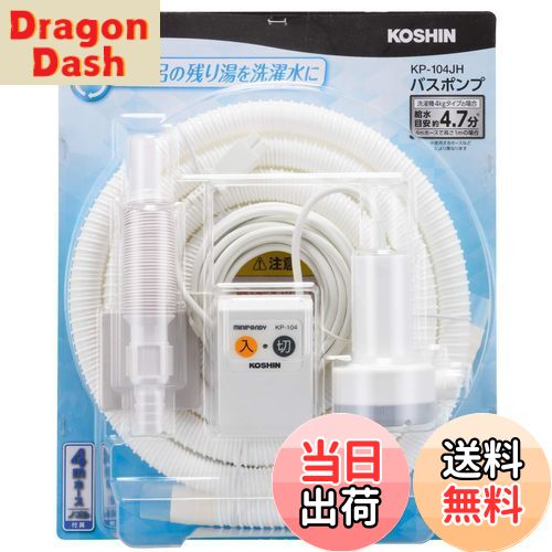 工進(KOSHIN) 家庭用バスポンプ AC-100V KP-104JH 4m ホース付 風呂 残り湯 洗濯機 最大吐出量 11L/分 (付属4mホース時)