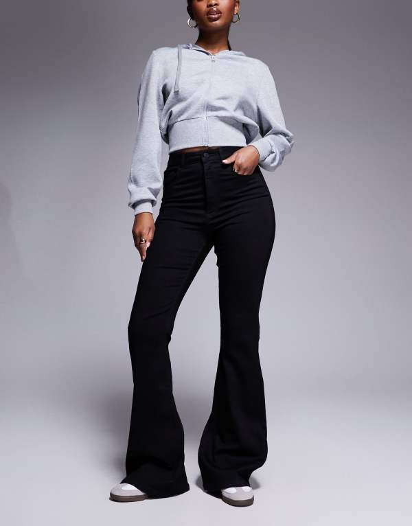 【送料無料】 エイソス レディース デニムパンツ ボトムス ASOS DESIGN sculpting super stretch flare jeans in black Black