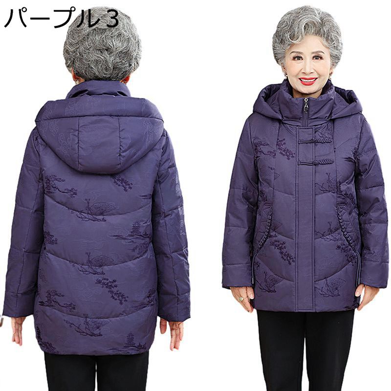 コットンジャケット レディース プリント 花 花柄 中綿ジャケット 上着 ダウンコットンジャケット 長袖 厚い 保温 綿服 やわらか 秋冬 耐久 婦人服 シニアアウター お年寄り 中高年 50-70代
