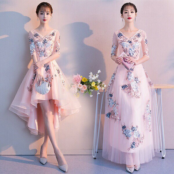 フィッシュテール ロングドレス 演奏会 ドレス 大人 ピアノ 発表会 演奏会用ドレス 演奏会ドレス パーティードレス フィッシュテール ミモレ 袖付き ロング 結婚式 イブニング フォーマル カクテルドレス 発表会【XS/S/M/L/XL/XXL/XXXL】 ピンク シャンパン