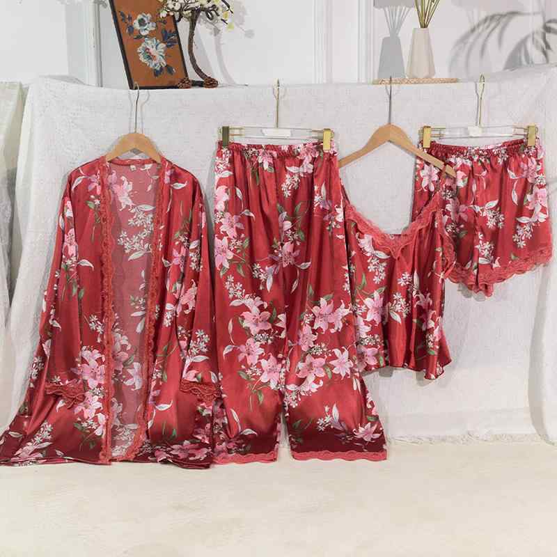 ・カテゴリ: セットアップ・スタイル: シンプルカジュアル・タイプ: オールインワン・主な素材: ポリエステル95%以上・特徴: フェイクシルク調、涼しい着心地、快適な肌触り・厚さ: 薄手・生地の厚さ: 超薄手(81-100g/平米)・ネックライン: Vネック・袖丈: 長袖・機能: 授乳対応、通気性・利用シーン: ルームウェア、ホテル・旅館、入浴後、睡眠時・対象: レディース・カラー: レッドベース大柄・サイズ展開: 1XL、2XL、3XL、4XL、5XL
