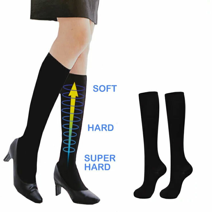レディース 着圧ハイソックス むくみ解消 靴下 ひざ下 ハイソックス 通勤 通学 黒 ブラック
