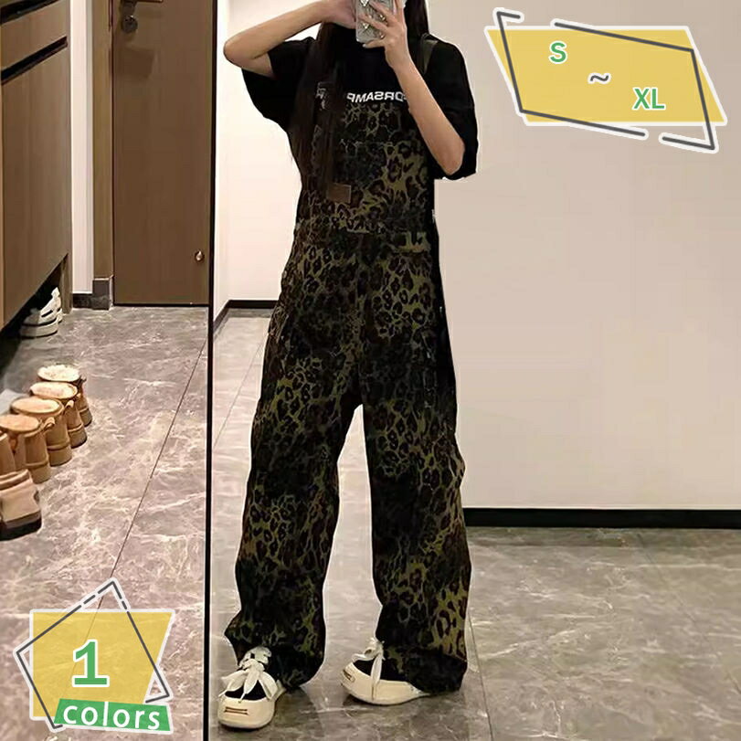 777円OFFクーポン オーバーオール デニム レディース 豹柄 サロペット パンツ 春 夏 秋 大きいサイズ ゆったり デニムパンツ サロペットパンツ サロペ ボトムス 総柄 ロングパンツ ワイド オールインワン 服 つなぎ 体型カバー アメカジ カジュアル RaogtCYU