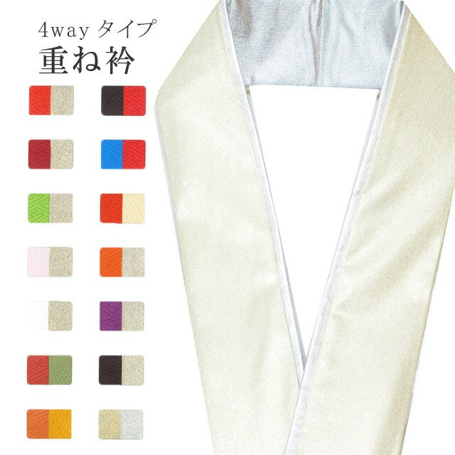 \20%OFF★SALE/ 重ね衿 ラミエール 綸子 ペアカラー 着物 和装 お洒落小物 伊達衿 振袖 卒業式 成人式 袴 結婚式 訪問着 入学式 小紋 色無地 花嫁 洗える ポリエステル 4通り使える No.35 金 銀 sin7604-bob09 【メール便可能】 彩小径